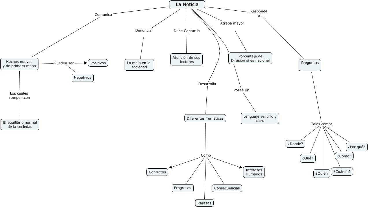 Este Cmap, tiene información relacionada con: La noticia KA, JOY,ANDRE, Preguntas Tales como: ¿Cómo?, La Noticia Posee un Lenguaje sencillo y claro, La Noticia Comunica Hechos nuevos y de primera mano, Hechos nuevos y de primera mano Los cuales rompen con El equilibrio normal de la sociedad, Preguntas Tales como: ¿Por qué?, La Noticia Atrapa mayor Porcentaje de Difusión si es nacional, Preguntas Tales como: ¿Cuándo?, La Noticia Denuncia Lo malo en la sociedad, Diferentes Temáticas Como Rarezas, La Noticia Responde a Preguntas, Diferentes Temáticas Como Consecuencias, La Noticia Debe Captar la Atención de sus lectores, Diferentes Temáticas Como Intereses Humanos, Preguntas Tales como: ¿Qué?, Diferentes Temáticas Como Conflictos, Hechos nuevos y de primera mano Pueden ser Positivos, La Noticia Desarrolla Diferentes Temáticas, Preguntas Tales como: ¿Donde?, Diferentes Temáticas Como Progresos, Hechos nuevos y de primera mano Pueden ser Negativos