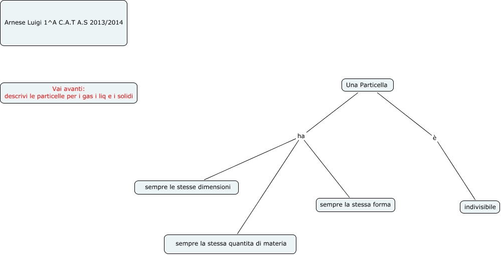 Questa Cmap, creata con IHMC CmapTools, contiene informazioni relative a: Le proprietà delle particelle (MP 1.2), Una Particella ha sempre le stesse dimensioni, Una Particella ha sempre la stessa forma, Una Particella ha sempre la stessa quantita di materia, Una Particella è indivisibile
