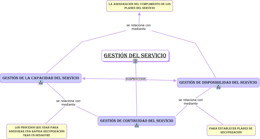 Este Cmap, tiene información relacionada con: Mapa Global Gestión del Servicio, Gestión del Servicio Subprocesos gestión de continuidad del servicio, Gestión del Servicio Subprocesos gestión de la capacidad del servicio, gestión de la capacidad del servicio se relaciona con mediante los procesos que usan para asegurar una rápida recuperación tras un desastre, Gestión del Servicio Subprocesos gestión de disponibilidad del servicio, gestión de disponibilidad del servicio se relaciona con mediante gestión de continuidad del servicio, gestión de disponibilidad del servicio se relaciona con mediante para establecer planes de recuperación, gestión de la capacidad del servicio se relaciona con mediante la aseguración del cumplimiento de los planes del servicio, gestión de la capacidad del servicio se relaciona con mediante gestión de disponibilidad del servicio, gestión de la capacidad del servicio se relaciona con mediante gestión de continuidad del servicio