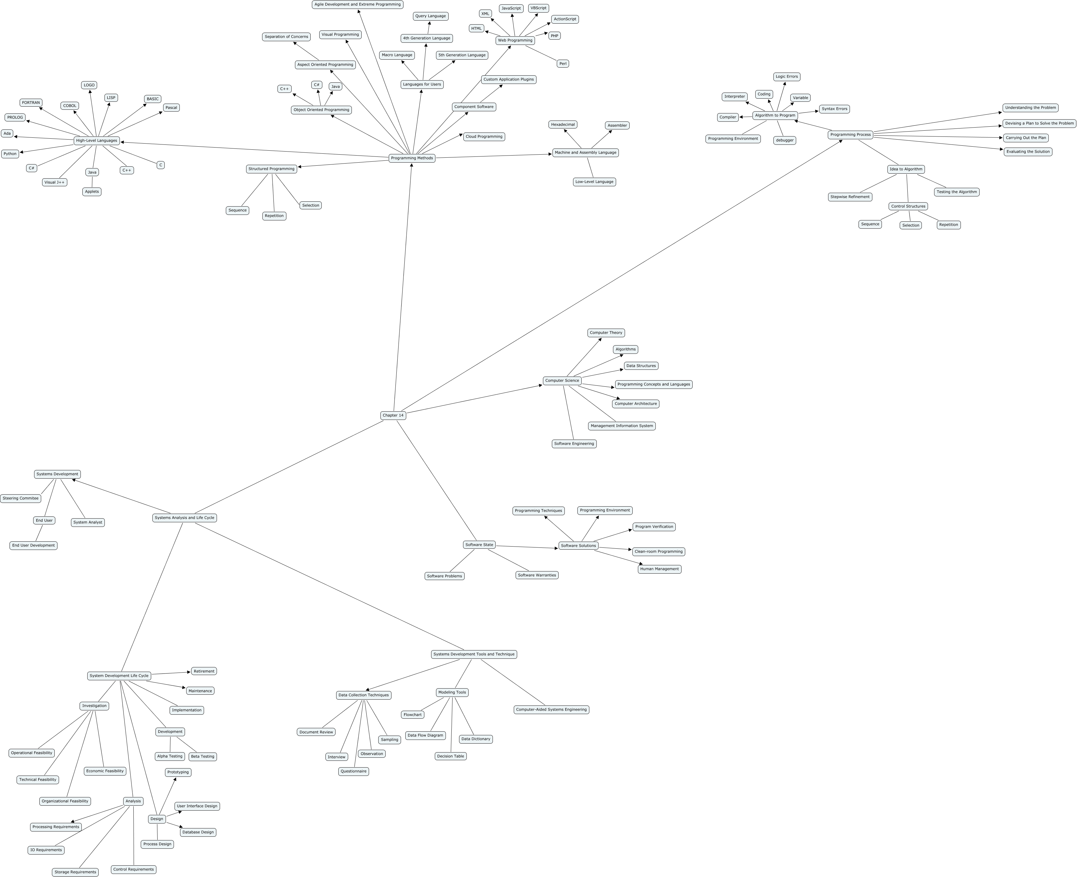 This Concept Map, created with IHMC CmapTools, has information related to: 1, Software Solutions Clean-room Programming, Algorithm to Program Syntax Errors, High-Level Languages C, Chapter 14 Programming Methods, Data Collection Techniques Interview, Systems Analysis and Life Cycle Systems Development, Software State Software Warranties, Design Prototyping, Programming Methods High-Level Languages, High-Level Languages Visual J++, Programming Methods Visual Programming, Software Solutions Programming Environment, Algorithm to Program Interpreter, Web Programming XML, Analysis IO Requirements, Aspect Oriented Programming Separation of Concerns, Data Collection Techniques Questionnaire, Programming Methods Component Software, Software State Software Solutions, Structured Programming Repetition
