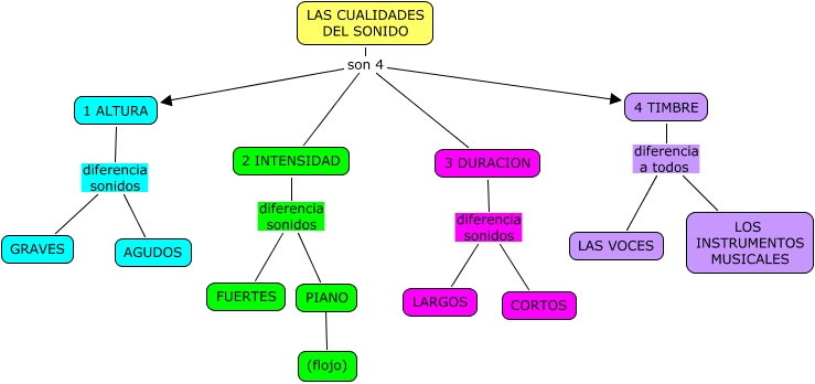 Este Cmap, tiene información relacionada con: LAS CUALIDADES DEL SONIDO (Lucía Re), 1 ALTURA diferencia sonidos AGUDOS, 2 INTENSIDAD diferencia sonidos FUERTES, LAS CUALIDADES DEL SONIDO son 4 1 ALTURA, 3 DURACION diferencia sonidos CORTOS, 3 DURACION diferencia sonidos LARGOS, LAS CUALIDADES DEL SONIDO son 4 4 TIMBRE, 4 TIMBRE diferencia a todos LOS INSTRUMENTOS MUSICALES, 2 INTENSIDAD diferencia sonidos PIANO, LAS CUALIDADES DEL SONIDO son 4 2 INTENSIDAD, LAS CUALIDADES DEL SONIDO son 4 3 DURACION, 4 TIMBRE diferencia a todos LAS VOCES, 1 ALTURA diferencia sonidos GRAVES, PIANO ???? (flojo)