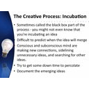 6 Steps of the Creative Process.url An idea evaluation checklist.url Convergent Thinking.png Criteria Based Harvesting of Ideas.url Evaluating Ideas - the long version.url Ideas - How to evaluate.url Incubation.png Reassessing the A-HA Moment.url SCAMPER information.url Seven Stages of Creativity - second version.url Six Hat Thinking.url Strategies for Divergent Thinking.url Summary of a Book on the A-HA Moment.url Synectics - Metaphors.url The A-HA Moment - how relaxation helps.url The Creative Idea Implementation Plan.url What is SCAMPER.url