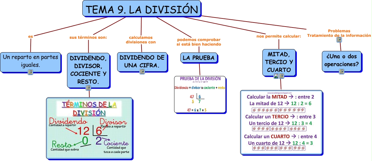 Este Cmap, tiene información relacionada con: TEMA 9. LA DIVISIÓN, DIVIDENDO, DIVISOR, COCIENTE Y RESTO. ????, TEMA 9. LA DIVISIÓN nos permite calcular: MITAD, TERCIO Y CUARTO, TEMA 9. LA DIVISIÓN podemos comprobar si está bien haciendo LA PRUEBA, LA PRUEBA ????, TEMA 9. LA DIVISIÓN es Un reparto en partes iguales., TEMA 9. LA DIVISIÓN Problemas Tratamiento de la información ¿Una o dos operaciones?, TEMA 9. LA DIVISIÓN sus términos son: DIVIDENDO, DIVISOR, COCIENTE Y RESTO., MITAD, TERCIO Y CUARTO ????, TEMA 9. LA DIVISIÓN calculamos divisiones con DIVIDENDO DE UNA CIFRA.
