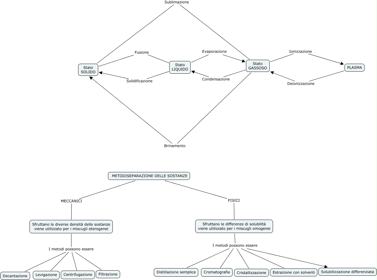 Questa Cmap, creata con IHMC CmapTools, contiene informazioni relative a: Passaggi di stato, Stato GASSOSO Condensazione Stato LIQUIDO, Stato GASSOSO Brinamento Stato SOLIDO, PLASMA Deionizzazione Stato GASSOSO, Sfruttano le differenze di solubilità viene utilizzato per i miscugli omogenei I metodi possono essere Solubilizzazione differenziata, Sfruttano le diverse densità delle sostanze viene utilizzato per i miscugli eterogenei I metodi possono essere Filtrazione, Stato GASSOSO Ionizzazione PLASMA, Sfruttano le differenze di solubilità viene utilizzato per i miscugli omogenei I metodi possono essere Cristallizzazione, Sfruttano le differenze di solubilità viene utilizzato per i miscugli omogenei I metodi possono essere Estrazione con solventi, Sfruttano le diverse densità delle sostanze viene utilizzato per i miscugli eterogenei I metodi possono essere Decantazione, Stato LIQUIDO Solidificazione Stato SOLIDO, Stato SOLIDO Sublimazione Stato GASSOSO, Stato LIQUIDO Evaporazione Stato GASSOSO, Stato SOLIDO Fusione Stato LIQUIDO, Sfruttano le differenze di solubilità viene utilizzato per i miscugli omogenei I metodi possono essere Distillazione semplice, Sfruttano le diverse densità delle sostanze viene utilizzato per i miscugli eterogenei I metodi possono essere Centrifugazione, METODISEPARAZIONE DELLE SOSTANZE MECCANICI Sfruttano le diverse densità delle sostanze viene utilizzato per i miscugli eterogenei, Sfruttano le differenze di solubilità viene utilizzato per i miscugli omogenei I metodi possono essere Cromatografia, Sfruttano le diverse densità delle sostanze viene utilizzato per i miscugli eterogenei I metodi possono essere Levigazione, METODISEPARAZIONE DELLE SOSTANZE FISICI Sfruttano le differenze di solubilità viene utilizzato per i miscugli omogenei