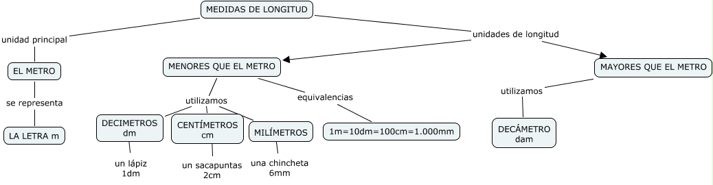 Este Cmap, tiene información relacionada con: MEDIDAS DE LONGITUD MIGUEL J, MEDIDAS DE LONGITUD unidades de longitud MAYORES QUE EL METRO, MEDIDAS DE LONGITUD unidad principal EL METRO, MENORES QUE EL METRO utilizamos CENTÍMETROS cm, EL METRO se representa LA LETRA m, MENORES QUE EL METRO equivalencias 1m=10dm=100cm=1.000mm, MILÍMETROS ???? una chincheta 6mm, CENTÍMETROS cm ???? un sacapuntas 2cm, DECIMETROS dm ???? un lápiz 1dm, MEDIDAS DE LONGITUD unidades de longitud MENORES QUE EL METRO, MENORES QUE EL METRO utilizamos MILÍMETROS, MENORES QUE EL METRO utilizamos DECIMETROS dm, MAYORES QUE EL METRO utilizamos DECÁMETRO dam