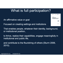 509_1-24-12-PES-SurveyStatus with bookmarks 3-20-12.pdf Benedict.mp4 CESfHelath.info_image.png Continuum1.png Danielle_Priess_640x480.mov DefinitionOfPubScholarship_IA copy.png EngagedScholarship-NGRAM.png Flyer, Full Participation Catalyst Paper.png Four_Continuua.png FullParticipationMindset_1.png FullParticipationMindset_2.png FullParticipationMindset_3.png IvoryTower-NGRAM-1830-2008.png KEVIN.mov - YouTube_640x480.mov Mixed Girl Problems.url P1_Sarah_1.44min.mov P2_Cynthia.mov P3_Tomas.mov P4_Selinda.mov PrimarySecondaryArtifactsScholarship.png Profile_PES.png Prototype1_Cradle To Community Scholar_Sarah.pdf Prototype2_Artist as Scholar_Cynthia.pdf Prototype3_Teacher To Engaged Scholar_Tomas.pdf Prototype4_Program Coordinator To Engaged Scholar-Administrator_Selinda.pdf Reccs.png ScholarshipInPublic.png Stats_MixedGirlProblems-April 2012.png SU PES Policy_1.png SU PES Policy_2.jpg TraditionalScholarship.jpg UnivNoPlace4Humanity_2.png WhatIsFullParticipation.png