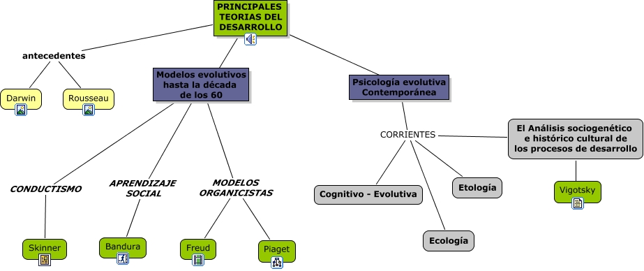 Este Cmap, tiene información relacionada con: teorias desarrollo, PRINCIPALES TEORIAS DEL DESARROLLO antecedentes Rousseau, Psicología evolutiva Contemporánea CORRIENTES Ecología, Modelos evolutivos hasta la década de los 60 MODELOS ORGANICISTAS Piaget, PRINCIPALES TEORIAS DEL DESARROLLO ???? Psicología evolutiva Contemporánea, Psicología evolutiva Contemporánea CORRIENTES El Análisis sociogenético e histórico cultural de los procesos de desarrollo, PRINCIPALES TEORIAS DEL DESARROLLO antecedentes Darwin, Modelos evolutivos hasta la década de los 60 CONDUCTISMO Skinner, PRINCIPALES TEORIAS DEL DESARROLLO ???? Modelos evolutivos hasta la década de los 60, Modelos evolutivos hasta la década de los 60 APRENDIZAJE SOCIAL Bandura, Psicología evolutiva Contemporánea CORRIENTES Cognitivo - Evolutiva, El Análisis sociogenético e histórico cultural de los procesos de desarrollo ???? Vigotsky, Modelos evolutivos hasta la década de los 60 MODELOS ORGANICISTAS Freud, Psicología evolutiva Contemporánea CORRIENTES Etología