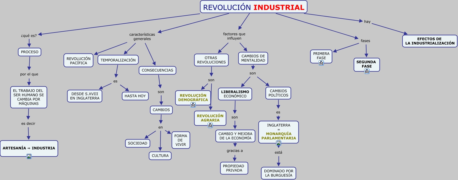 Este Cmap, tiene información relacionada con: REVOLUCIÓN INDUSTRIAL, REVOLUCIÓN INDUSTRIAL características generales CONSECUENCIAS, CAMBIOS en FORMA DE VIVIR, TEMPORALIZACIÓN es HASTA HOY, REVOLUCIÓN INDUSTRIAL características generales TEMPORALIZACIÓN, REVOLUCIÓN INDUSTRIAL factores que influyen CAMBIOS DE MENTALIDAD, OTRAS REVOLUCIONES son REVOLUCIÓN DEMOGRÁFICA, CAMBIOS en SOCIEDAD, LIBERALISMO ECONÓMICO son CAMBIO Y MEJORA DE LA ECONOMÍA, CAMBIOS DE MENTALIDAD son LIBERALISMO ECONÓMICO, REVOLUCIÓN INDUSTRIAL factores que influyen OTRAS REVOLUCIONES, CONSECUENCIAS son CAMBIOS, REVOLUCIÓN INDUSTRIAL fases PRIMERA FASE, REVOLUCIÓN INDUSTRIAL fases SEGUNDA FASE, PROCESO por el que EL TRABAJO DEL SER HUMANO SE CAMBIA POR MÁQUINAS, CAMBIOS en CULTURA, REVOLUCIÓN INDUSTRIAL características generales REVOLUCIÓN PACÍFICA, REVOLUCIÓN INDUSTRIAL ¿qué es? PROCESO, OTRAS REVOLUCIONES son REVOLUCIÓN AGRARIA, CAMBIOS DE MENTALIDAD son CAMBIOS POLÍTICOS, CAMBIO Y MEJORA DE LA ECONOMÍA gracias a PROPIEDAD PRIVADA