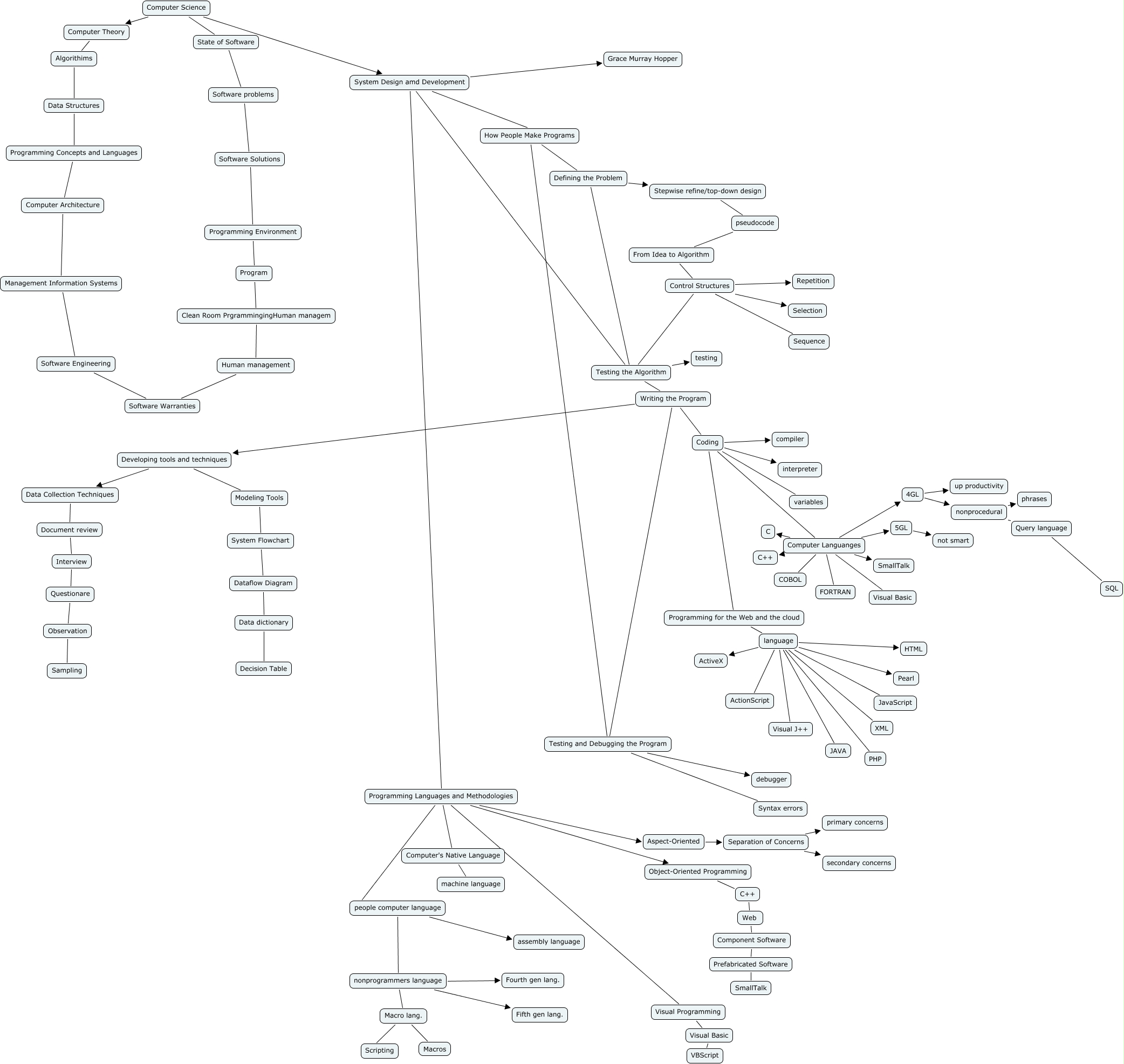 This Concept Map, created with IHMC CmapTools, has information related to: Team 08, Computer Languanges COBOL, Coding interpreter, From Idea to Algorithm Control Structures, Web Component Software, Prefabricated Software SmallTalk, language PHP, Developing tools and techniques Modeling Tools, nonprogrammers language Fourth gen lang., Macro lang. Scripting, Coding Programming for the Web and the cloud, Object-Oriented Programming C++, How People Make Programs Defining the Problem, language ActionScript, Software problems Software Solutions, Computer Theory Algorithims, Observation Sampling, Aspect-Oriented Separation of Concerns, Visual Programming Visual Basic, Management Information Systems Software Engineering, 4GL up productivity