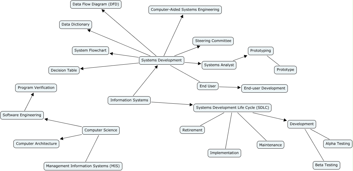 This Concept Map, created with IHMC CmapTools, has information related to: Alyssa B, Systems Development Computer-Aided Systems Engineering, Information Systems Systems Development Life Cycle (SDLC), Development Alpha Testing, Systems Development Decision Table, Computer Science Software Engineering, Systems Development System Flowchart, Systems Development Data Flow Diagram (DFD), Software Engineering Program Verification, Systems Development Life Cycle (SDLC) Development, End User End-user Development, Systems Development Life Cycle (SDLC) Retirement, Systems Development Steering Committee, Prototyping Prototype, Computer Science Management Information Systems (MIS), Computer Science Computer Architecture, Systems Development Data Dictionary, Development Beta Testing, Systems Development Systems Analyst, Systems Analyst Prototyping, Systems Development Life Cycle (SDLC) Implementation