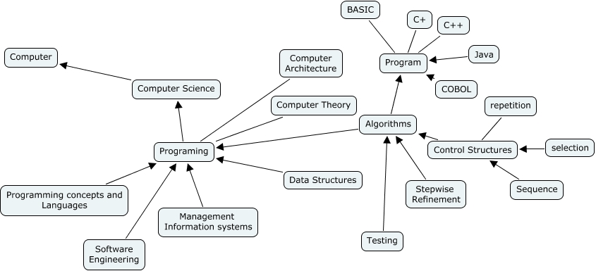 This Concept Map, created with IHMC CmapTools, has information related to: Domonique A, repetition Control Structures, Algorithms Programing, Stepwise Refinement Algorithms, C++ Program, Testing Algorithms, Software Engineering Programing, Computer Science Computer, Programming concepts and Languages Programing, Computer Theory Programing, Sequence Control Structures, BASIC Program, Java Program, Programing Computer Science, Algorithms Program, C+ Program, COBOL Program, Management Information systems Programing, Computer Architecture Programing, selection Control Structures, Control Structures Algorithms