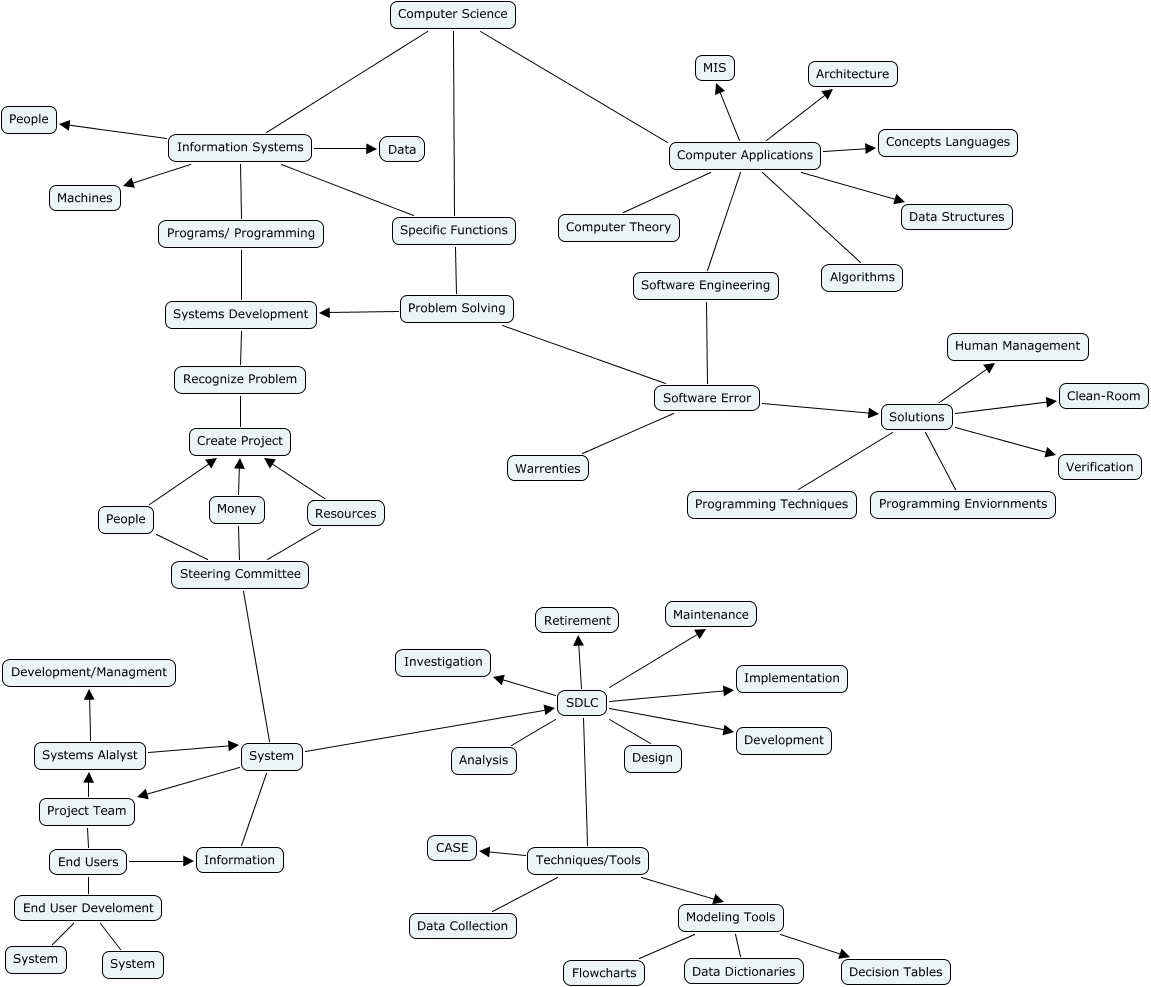 This Concept Map, created with IHMC CmapTools, has information related to: Connor B, Computer Science Computer Applications, Project Team Systems Alalyst, Computer Applications Computer Theory, Computer Applications Data Structures, Techniques/Tools CASE, SDLC Maintenance, SDLC Analysis, Systems Development Recognize Problem, Solutions Clean-Room, Money Steering Committee, Project Team End Users, Techniques/Tools Data Collection, Information Systems Data, People Create Project, Resources Create Project, SDLC Investigation, Software Error Solutions, System Project Team, End User Develoment System, End Users Information