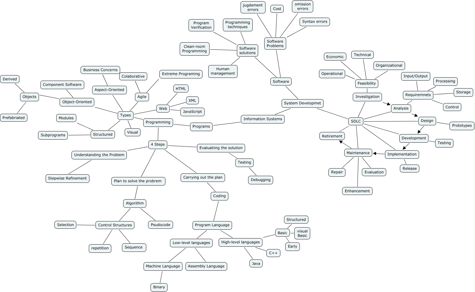 This Concept Map, created with IHMC CmapTools, has information related to: team 1, Development Implementation, Requiremnets Input/Output, Types Structured, Maintenance Repair, High-level languages C++, Requiremnets Storage, jugdement errors Software Problems, Development Testing, Feasibility Technical, Machine Language Binary, Types Visual, Selection Control Structures, SDLC Development, Implementation SDLC, Maintenance SDLC, Agile Extreme Programing, Java High-level languages, Feasibility Organizational, Design SDLC, Objects Prefabriated
