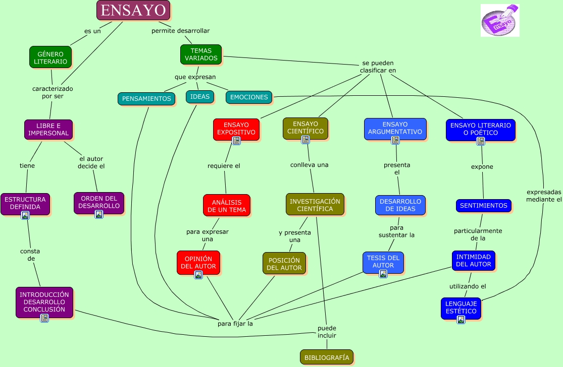 Este Cmap, tiene información relacionada con: The bookish team, TEMAS VARIADOS se pueden clasificar en ENSAYO CIENTÍFICO, PENSAMIENTOS para fijar la OPINIÓN DEL AUTOR, ENSAYO permite desarrollar TEMAS VARIADOS, TEMAS VARIADOS se pueden clasificar en ENSAYO LITERARIO O POÉTICO, ENSAYO caracterizado por ser LIBRE E IMPERSONAL, ENSAYO CIENTÍFICO conlleva una INVESTIGACIÓN CIENTÍFICA, IDEAS para fijar la OPINIÓN DEL AUTOR, TEMAS VARIADOS se pueden clasificar en ENSAYO ARGUMENTATIVO, ENSAYO es un GÉNERO LITERARIO, INVESTIGACIÓN CIENTÍFICA puede incluir BIBLIOGRAFÍA, ENSAYO LITERARIO O POÉTICO expone SENTIMIENTOS, EMOCIONES expresadas mediante el LENGUAJE ESTÉTICO, ENSAYO ARGUMENTATIVO presenta el DESARROLLO DE IDEAS, TEMAS VARIADOS se pueden clasificar en ENSAYO EXPOSITIVO, ANÁLISIS DE UN TEMA para expresar una OPINIÓN DEL AUTOR, INTRODUCCIÓN DESARROLLO CONCLUSIÓN puede incluir BIBLIOGRAFÍA, SENTIMIENTOS particularmente de la INTIMIDAD DEL AUTOR, IDEAS para fijar la INTIMIDAD DEL AUTOR, GÉNERO LITERARIO caracterizado por ser LIBRE E IMPERSONAL, TEMAS VARIADOS que expresan EMOCIONES