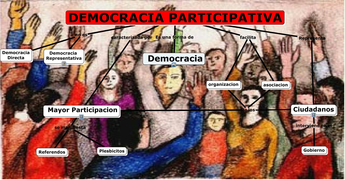 Este Cmap, tiene información relacionada con: Gil Alexis, DEMOCRACIA PARTICIPATIVA Representa Ciudadanos, Mayor Participacion se manifiesta Referendos, organizacion De los Ciudadanos, Mayor Participacion se manifiesta Plesbicitos, DEMOCRACIA PARTICIPATIVA Es una forma de Democracia, DEMOCRACIA PARTICIPATIVA facilita asociacion, Mayor Participacion De los Ciudadanos, DEMOCRACIA PARTICIPATIVA no es Democracia Representativa, asociacion De los Ciudadanos, DEMOCRACIA PARTICIPATIVA no es Democracia Directa, DEMOCRACIA PARTICIPATIVA caracterizada por Mayor Participacion, DEMOCRACIA PARTICIPATIVA facilita organizacion, Ciudadanos interviene en el Gobierno