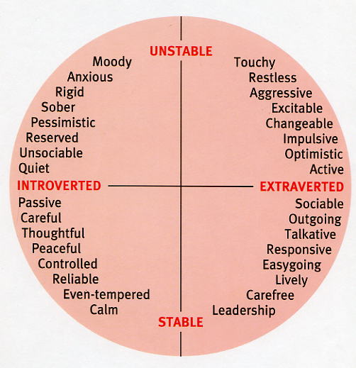 Questa Cmap, creata con IHMC CmapTools, contiene informazioni relative a: m320, temperamento che potrà essere collerico (irascibile), Teorie dei tipi ispirò Hans Jürgen Eysenck psicologo tedesco (1916 - 1997), Hans Jürgen Eysenck psicologo tedesco (1916 - 1997) suggerì di disporre su un piano cartesiano i diversi tipi di personalità in base a due dimensioni fondamentali, disporre su un piano cartesiano i diversi tipi di personalità in base a due dimensioni fondamentali in particolare possono aversi i tipi puri (coloro che si posizionano agli estremi), Teoria degli umori (o teoria umorale) secondo la quale la salute dipende dal- l'equilibrio di quattro umori, la salute dipende dal- l'equilibrio di quattro umori che sono bile nera (milza/terra), la salute dipende dal- l'equilibrio di quattro umori il prevalere di uno di questi umori determinerebbe il temperamento, lo stato di attivazione fisiologica alto determina che l'introverso, trovandosi in uno stato interno già attivo, non ha bisogno di trovare ulteriori stimoli esterni che, anzi, possono disturbarlo, Teorie dell'antichità classica (pensiero greco) tra gli autori Ippocrate medico dell'antica Grecia (460 a.C. - 377 a.C.), la realtà è costituita da quattro elementi fondamentali che sono terra, psicoticismo è una caratteristica che si somma alle due dimensioni fondamentali, Teorie dell'antichità classica (pensiero greco) tra gli autori Empedocle V secolo a.C., temperamento che potrà essere sanguigno (energico), Teorie dei tipi origini nelle Teorie dell'antichità classica (pensiero greco), disporre su un piano cartesiano i diversi tipi di personalità in base a due dimensioni fondamentali sull'asse delle ordinate stabilità, la salute dipende dal- l'equilibrio di quattro umori che sono sangue (aria/cuore), la salute dipende dal- l'equilibrio di quattro umori che sono bile gialla (fegato/fuoco), disporre su un piano cartesiano i diversi tipi di personalità in base a due dimensioni fondamentali sull'asse delle ascisse introversione, l'introverso, trovandosi in uno stato interno già attivo, non ha bisogno di trovare ulteriori stimoli esterni che, anzi, possono disturbarlo ipotesi verificata con un esperimento nel 1963 da J. Spielman Soggetti: un gruppo di introversi e uno di estroversi Prova: battere una piastra con un bastoncino (compito noioso) Misura: andamento dei tempi di intervallo tra un battito e l'altro Conclusione: i tempi degli estroversi tendevano ad aumentare, Ippocrate medico dell'antica Grecia (460 a.C. - 377 a.C.) sviluppò la Teoria degli umori (o teoria umorale)