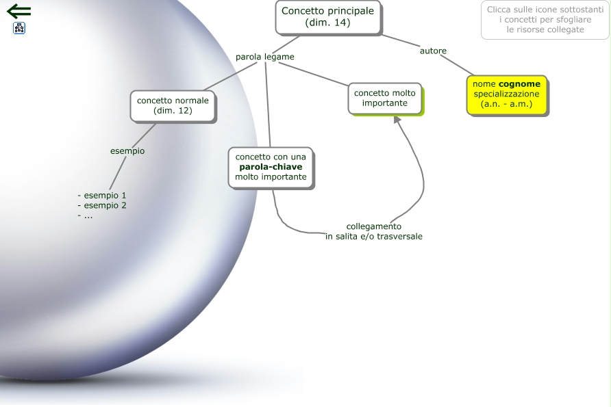 Questa Cmap, creata con IHMC CmapTools, contiene informazioni relative a: m000_pagina-standard, concetto con una parola-chiave molto importante collegamento in salita e/o trasversale concetto molto importante, Concetto principale (dim. 14) parola legame concetto normale (dim. 12), Concetto principale (dim. 14) autore nome cognome specializzazione (a.n. - a.m.), Concetto principale (dim. 14) parola legame concetto con una parola-chiave molto importante, concetto normale (dim. 12) esempio - esempio 1 - esempio 2 - ..., Concetto principale (dim. 14) parola legame concetto molto importante