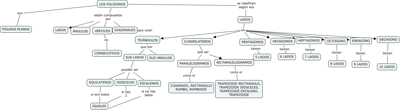 Este Cmap, tiene información relacionada con: LOS POLIGONOS (Lucas), HEXAGONOS tienen 6 LADOS, ISOSCELES si hay 2 IGUALES, LOS POL�?GONOS son FIGURAS PLANAS, VÉRTICES están compuestos por DIAGONALES, ESCALENOS si no hay lados IGUALES, SUS LADOS pueden ser EQUILATEROS, LADOS en DECAGONO, VÉRTICES no CONSECUTIVOS, LOS POL�?GONOS se clasifican según sus LADOS, LADOS en PENTAGONOS, SUS LADOS pueden ser ESCALENOS, SUS LADOS pueden ser ISOSCELES, LADOS en ENEAGONO, LADOS en HEPTAGONOS, ENEAGONO tienen 9 LADOS, LOS POL�?GONOS están compuestos por LADOS, DIAGONALES que unen VÉRTICES, PARALELOGRAMOS como el CUADRADO, RECTANGULO ROMBO, ROMBOIDE, LOS POL�?GONOS están compuestos por �?NGULOS, LOS POL�?GONOS están compuestos por DIAGONALES