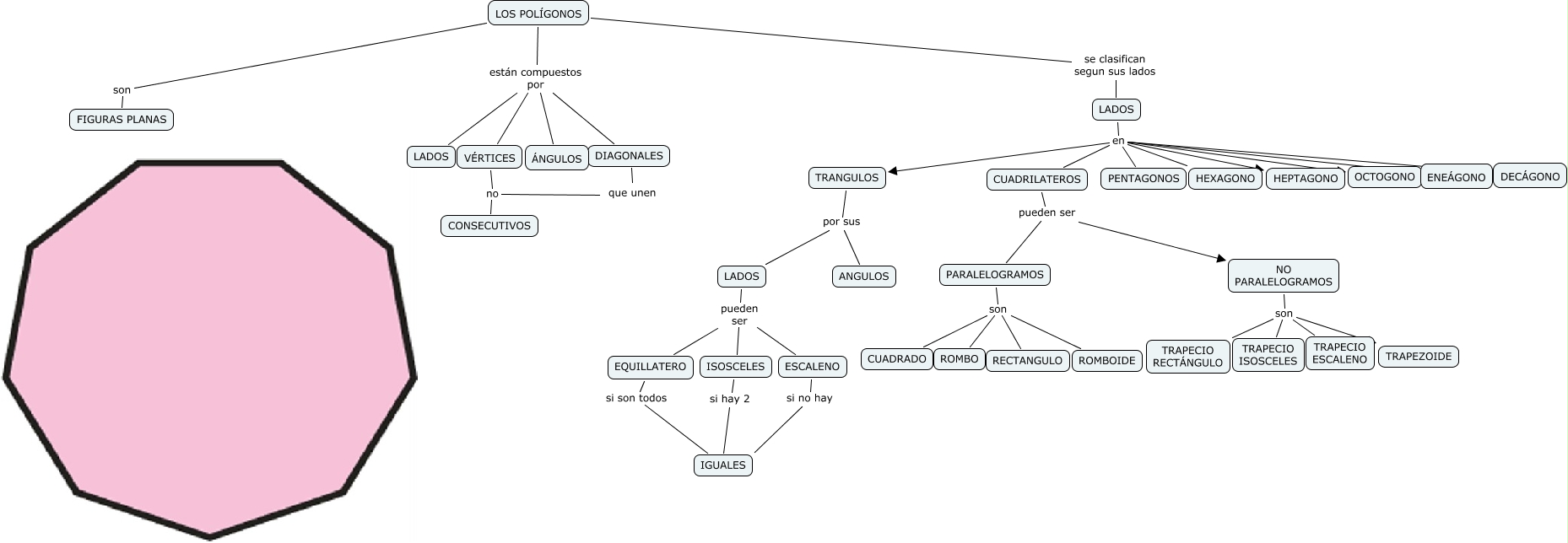 Este Cmap, tiene información relacionada con: LOS POL�?GONOS_Marta, EQUILLATERO si son todos IGUALES, LOS POL�?GONOS están compuestos por LADOS, LOS POL�?GONOS se clasifican segun sus lados LADOS, que unen no CONSECUTIVOS, LADOS pueden ser EQUILLATERO, LADOS en TRANGULOS, PARALELOGRAMOS son ROMBO, ISOSCELES si hay 2 IGUALES, LADOS pueden ser ISOSCELES, CUADRILATEROS pueden ser NO PARALELOGRAMOS, VÉRTICES no CONSECUTIVOS, LOS POL�?GONOS están compuestos por �?NGULOS, LOS POL�?GONOS son FIGURAS PLANAS, LOS POL�?GONOS están compuestos por VÉRTICES, PARALELOGRAMOS son ROMBOIDE, LADOS pueden ser ESCALENO, NO PARALELOGRAMOS son TRAPECIO RECT�?NGULO, ESCALENO si no hay IGUALES, NO PARALELOGRAMOS son TRAPEZOIDE, LADOS en HEPTAGONO