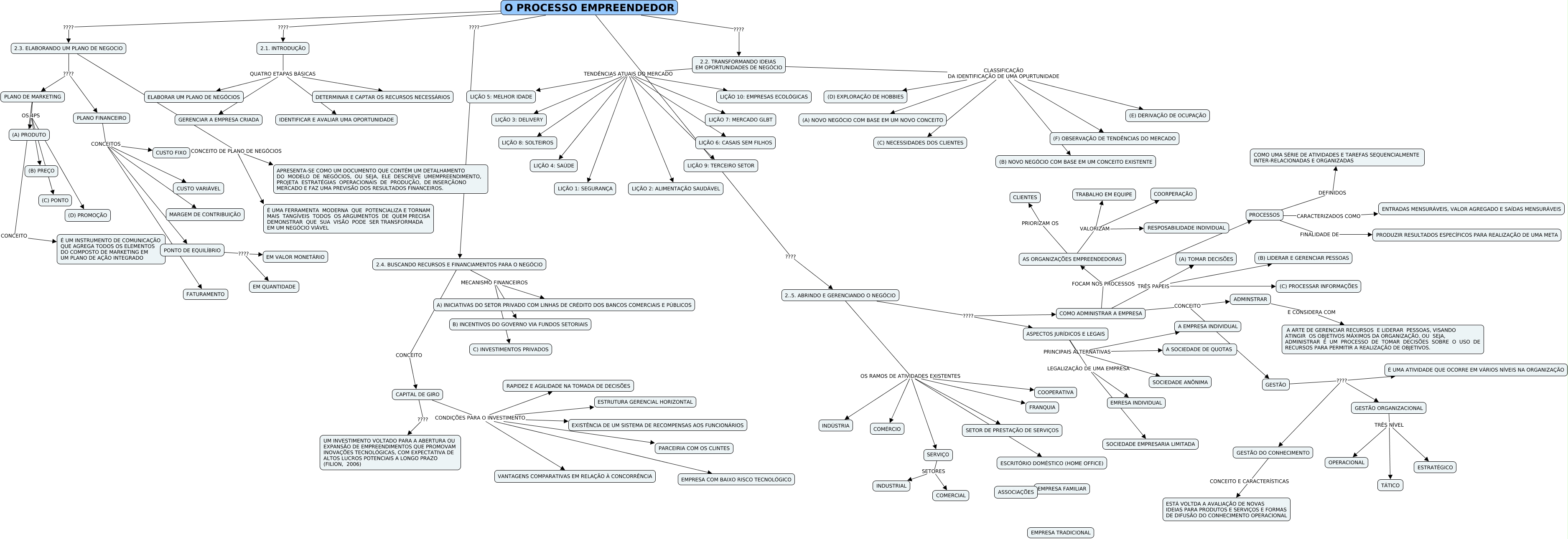 Esse mapa conceitual, produzido no IHMC CmapTools, tem a informação relacionada a: 02. o processo empreendedor, CAPITAL DE GIRO CONDIÇÕES PARA O INVESTIMENTO RAPIDEZ E AGILIDADE NA TOMADA DE DECISÕES, O PROCESSO EMPREENDEDOR ???? 2..5. ABRINDO E GERENCIANDO O NEGÓCIO, 2.2. TRANSFORMANDO IDEIAS EM OPORTUNIDADES DE NEGÓCIO CLASSIFICAÇÃO DA IDENTIFICAÇÃO DE UMA OPURTUNIDADE (D) EXPLORAÇÃO DE HOBBIES, AS ORGANIZAÇÕES EMPREENDEDORAS VALORIZAM COORPERAÇÃO, 2.4. BUSCANDO RECURSOS E FINANCIAMENTOS PARA O NEGÓCIO CONCEITO CAPITAL DE GIRO, AS ORGANIZAÇÕES EMPREENDEDORAS VALORIZAM RESPOSABILIDADE INDIVIDUAL, GESTÃO ???? É UMA ATIVIDADE QUE OCORRE EM VÁRIOS NÍVEIS NA ORGANIZAÇÃO, 2.3. ELABORANDO UM PLANO DE NEGOCIO ???? PLANO FINANCEIRO, PLANO FINANCEIRO CONCEITOS PONTO DE EQUILÍBRIO, COMO ADMINISTRAR A EMPRESA FOCAM NOS PROCESSOS AS ORGANIZAÇÕES EMPREENDEDORAS, 2.2. TRANSFORMANDO IDEIAS EM OPORTUNIDADES DE NEGÓCIO TENDÊNCIAS ATUAIS DO MERCADO LIÇÃO 2: ALIMENTAÇÃO SAUDÁVEL, ASPECTOS JURÍDICOS E LEGAIS LEGALIZAÇÃO DE UMA EMPRESA SOCIEDADE EMPRESARIA LIMITADA, 2.2. TRANSFORMANDO IDEIAS EM OPORTUNIDADES DE NEGÓCIO TENDÊNCIAS ATUAIS DO MERCADO LIÇÃO 8: SOLTEIROS, CAPITAL DE GIRO CONDIÇÕES PARA O INVESTIMENTO ESTRUTURA GERENCIAL HORIZONTAL, COMO ADMINISTRAR A EMPRESA CONCEITO ADMINSTRAR, O PROCESSO EMPREENDEDOR ???? 2.4. BUSCANDO RECURSOS E FINANCIAMENTOS PARA O NEGÓCIO, 2.2. TRANSFORMANDO IDEIAS EM OPORTUNIDADES DE NEGÓCIO TENDÊNCIAS ATUAIS DO MERCADO LIÇÃO 1: SEGURANÇA, PROCESSOS FINALIDADE DE PRODUZIR RESULTADOS ESPECÍFICOS PARA REALIZAÇÃO DE UMA META, PLANO DE MARKETING OS 4PS (B) PREÇO, GESTÃO ORGANIZACIONAL TRÊS NÍVEL OPERACIONAL