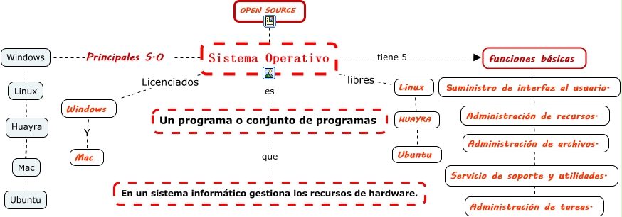Este Cmap, tiene información relacionada con: Sistemas operativos, Sistema Operativo Principales S.O Windows, Sistema Operativo libres Linux, Sistema Operativo OPEN SOURCE, Windows Y Mac, Huayra ???? Ubuntu, Un programa o conjunto de programas que En un sistema informático gestiona los recursos de hardware., Huayra ???? Mac, Linux ???? Ubuntu, Sistema Operativo Licenciados Windows, Windows ???? Huayra, Sistema Operativo es Un programa o conjunto de programas, Linux ???? Ubuntu, funciones básicas ???? Administración de tareas., Sistema Operativo tiene 5 funciones básicas