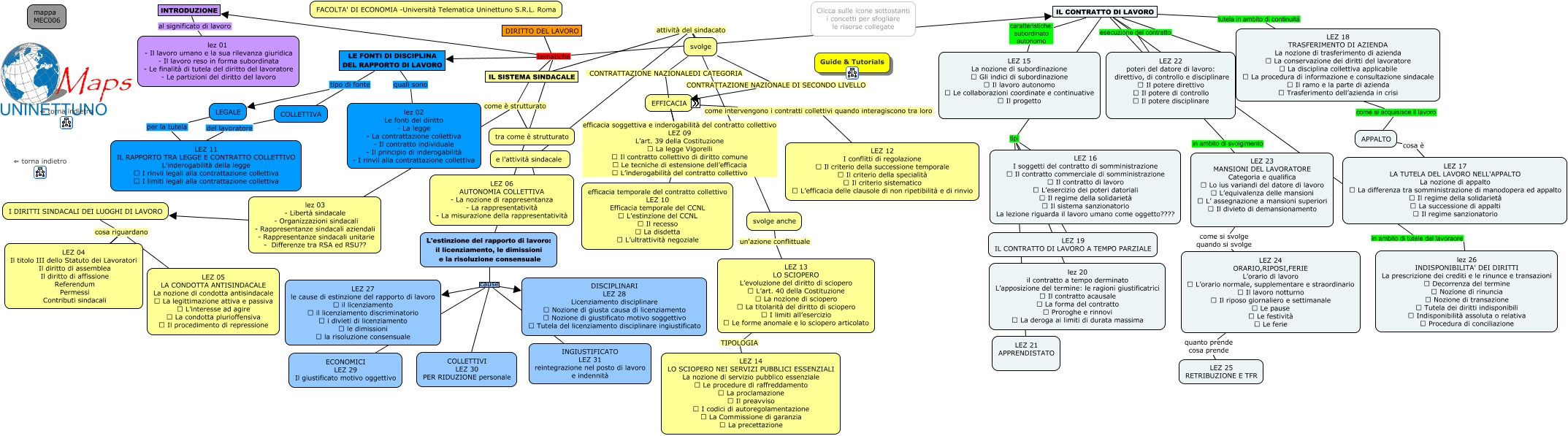 Questa Cmap, creata con IHMC CmapTools, contiene informazioni relative a: MEC006, IL CONTRATTO DI LAVORO tipi LEZ 16 I soggetti del contratto di somministrazione Il contratto commerciale di somministrazione Il contratto di lavoro L’esercizio dei poteri datoriali Il regime della solidarietà Il sistema sanzionatorio La lezione riguarda il lavoro umano come oggetto????, EFFICACIA come intervengono i contratti collettivi quando interagiscono tra loro LEZ 12 I conflitti di regolazione Il criterio della successione temporale Il criterio della specialità Il criterio sistematico L’efficacia delle clausole di non ripetibilità e di rinvio, DIRITTO DEL LAVORO tematiche IL SISTEMA SINDACALE, COLLETTIVA del lavoratore LEZ 11 IL RAPPORTO TRA LEGGE E CONTRATTO COLLETTIVO L’inderogabilità della legge I rinvii legali alla contrattazione collettiva I limiti legali alla contrattazione collettiva, DIRITTO DEL LAVORO tematiche IL CONTRATTO DI LAVORO, APPALTO cosa è LEZ 17 LA TUTELA DEL LAVORO NELL'APPALTO La nozione di appalto La differenza tra somministrazione di manodopera ed appalto Il regime della solidarietà La successione di appalti Il regime sanzionatorio, IL SISTEMA SINDACALE attività del sindacato e l'attività sindacale, I DIRITTI SINDACALI DEI LUOGHI DI LAVORO cosa riguardano LEZ 04 Il titolo III dello Statuto dei Lavoratori Il diritto di assemblea Il diritto di affissione Referendum Permessi Contributi sindacali, IL CONTRATTO DI LAVORO tipi LEZ 21 APPRENDISTATO, I DIRITTI SINDACALI DEI LUOGHI DI LAVORO cosa riguardano LEZ 04 Il titolo III dello Statuto dei Lavoratori Il diritto di assemblea Il diritto di affissione Referendum Permessi Contributi sindacali, IL CONTRATTO DI LAVORO tipi LEZ 19 IL CONTRATTO DI LAVORO A TEMPO PARZIALE, L'estinzione del rapporto di lavoro: il licenziamento, le dimissioni e la risoluzione consensuale cause COLLETTIVI LEZ 30 PER RIDUZIONE personale, DIRITTO DEL LAVORO tematiche LE FONTI DI DISCIPLINA DEL RAPPORTO DI LAVORO, IL SISTEMA SINDACALE attività del sindacato svolge, IL SISTEMA SINDACALE attività del sindacato svolge anche, INTRODUZIONE al significato di lavoro lez 01 - Il lavoro umano e la sua rilevanza giuridica - Il lavoro reso in forma subordinata - Le finalità di tutela del diritto del lavoratore - Le partizioni del diritto del lavoro, IL CONTRATTO DI LAVORO in ambito di tutele del lavoraore lez 26 INDISPONIBILITA' DEI DIRITTI La prescrizione dei crediti e le rinunce e transazioni Decorrenza del termine Nozione di rinuncia Nozione di transazione Tutela dei diritti indisponibili Indisponibilità assoluta o relativa Procedura di conciliazione, LEZ 07 - Le tipologie di CCNL - I soggetti della contrattazione collettiva nazionale- - Il contenuto del CCNL - L’interpretazione del contratto efficacia soggettiva e inderogabilità del contratto collettivo LEZ 09 L’art. 39 della Costituzione La legge Vigorelli Il contratto collettivo di diritto comune Le tecniche di estensione dell’efficacia L’inderogabilità del contratto collettivo efficacia temporale del contratto collettivo LEZ 10 Efficacia temporale del CCNL L’estinzione del CCNL Il recesso La disdetta L’ultrattività negoziale, LEGALE per la tutela LEZ 11 IL RAPPORTO TRA LEGGE E CONTRATTO COLLETTIVO L’inderogabilità della legge I rinvii legali alla contrattazione collettiva I limiti legali alla contrattazione collettiva, L'estinzione del rapporto di lavoro: il licenziamento, le dimissioni e la risoluzione consensuale cause DISCIPLINARI LEZ 28 Licenziamento disciplinare Nozione di giusta causa di licenziamento Nozione di giustificato motivo soggettivo Tutela del licenziamento disciplinare ingiustificato