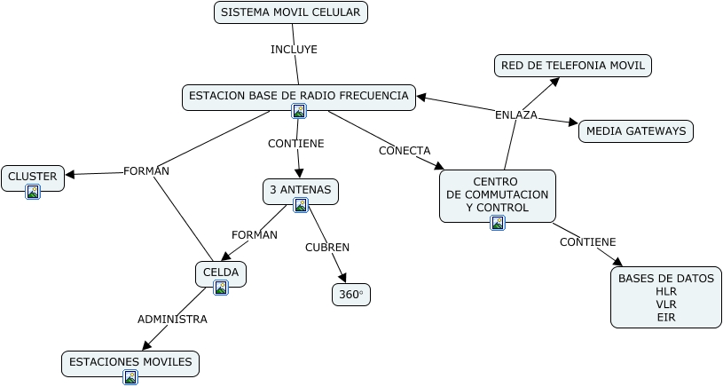 Este Cmap, tiene información relacionada con: SISTEMA MOVIL CELULAR, CENTRO DE COMMUTACION Y CONTROL ENLAZA RED DE TELEFONIA MOVIL, CELDA ADMINISTRA ESTACIONES MOVILES, CENTRO DE COMMUTACION Y CONTROL ENLAZA ESTACION BASE DE RADIO FRECUENCIA, ESTACION BASE DE RADIO FRECUENCIA FORMAN CLUSTER, 3 ANTENAS CUBREN 360°, CENTRO DE COMMUTACION Y CONTROL CONTIENE BASES DE DATOS HLR VLR EIR, ESTACION BASE DE RADIO FRECUENCIA CONECTA CENTRO DE COMMUTACION Y CONTROL, ESTACION BASE DE RADIO FRECUENCIA CONTIENE 3 ANTENAS, 3 ANTENAS FORMAN CELDA, SISTEMA MOVIL CELULAR INCLUYE ESTACION BASE DE RADIO FRECUENCIA, CELDA FORMAN CLUSTER, CENTRO DE COMMUTACION Y CONTROL ENLAZA MEDIA GATEWAYS