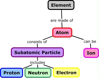 This Concept Map, created with IHMC CmapTools, has information related to: Matter Concept Map, Subatomic Particle includes Electron, Subatomic Particle includes Neutron, Atom consists of Subatomic Particle, Atom can be Ion, Subatomic Particle includes Proton, Element are made of Atom