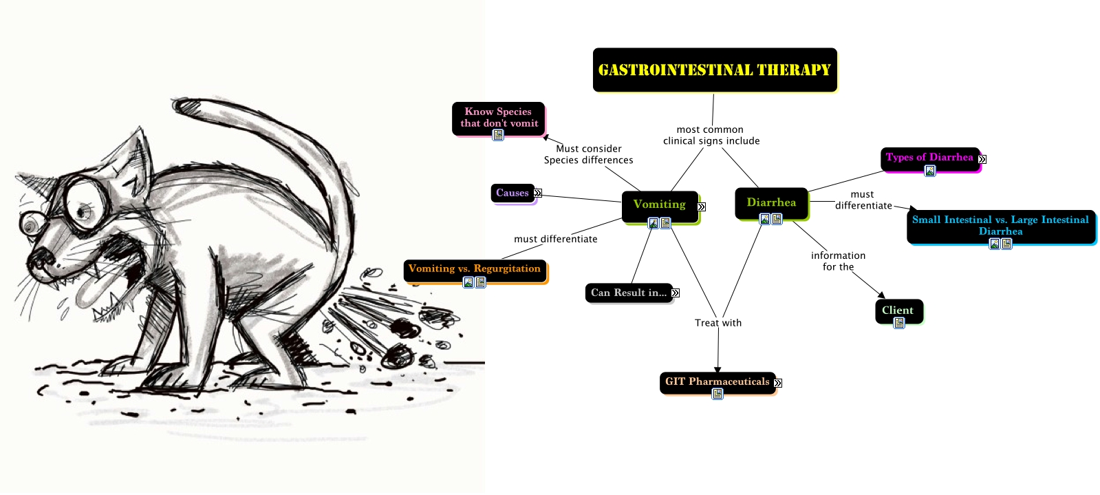 This Concept Map, created with IHMC CmapTools, has information related to: CLin Pharm 5 - GIT Therapy, Specific Therapy treatment Appetite Stimulants, Laxatives action Irritant, Toxicities due to ingestion of Macadamia Nuts, Rumen Pharmacology treatment Bloat therapy, Diarrhea Diarrhoea Malabsorptive, Toxicities due to ingestion of Avocado, Rumen Pharmacology treatment Rumen Antacids, Toxicities due to ingestion of Household Plants, Vomiting Treat with GIT Pharmacology, Diarrhea Treat with GIT Pharmacology, Specific Therapy treatment Liver Diseases, Toxicities due to ingestion of Chocolate, Laxatives action Lubricants, Non Specific Therapy treatment Dietary Modification, Specific Therapy treatment Emetics, Antidiarrheal action Motility modifying drugs, Vomiting Causes include Gastrointestinal causes, Vomiting Must consider Species differences Know Species that don't vomit, Vomiting can be Chronic, Specific Therapy treatment Digestants