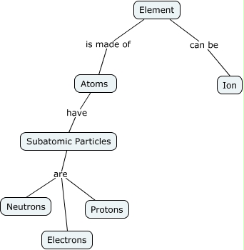 This Concept Map, created with IHMC CmapTools, has information related to: The Basic Structure of Matter, Subatomic Particles are Electrons, Atoms have Subatomic Particles, Element can be Ion, Subatomic Particles are Neutrons, Element is made of Atoms, Subatomic Particles are Protons