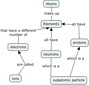 This Concept Map, created with IHMC CmapTools, has information related to: Structure of Matter, protons all have Elements, electrons that have a different number of Elements, Atoms make up Elements, neutrons all have Elements, ions are called electrons, neutrons which is a subatomic particle, subatomic particle which is a protons