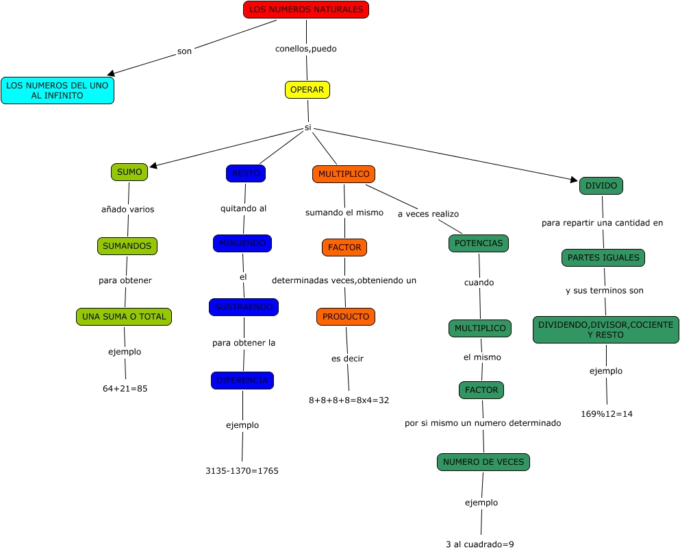 Este Cmap, tiene información relacionada con: LOS NUMEROS NATURALES-Raúl, SUMO añado varios SUMANDOS, SUSTRAENDO para obtener la DIFERENCIA, FACTOR por si mismo un numero determinado NUMERO DE VECES, PRODUCTO es decir 8+8+8+8=8x4=32, DIFERENCIA ejemplo 3135-1370=1765, OPERAR si MULTIPLICO, RESTO quitando al MINUENDO, MULTIPLICO a veces realizo POTENCIAS, DIVIDO para repartir una cantidad en PARTES IGUALES, UNA SUMA O TOTAL ejemplo 64+21=85, SUMANDOS para obtener UNA SUMA O TOTAL, MULTIPLICO sumando el mismo FACTOR, OPERAR si RESTO, PARTES IGUALES y sus terminos son DIVIDENDO,DIVISOR,COCIENTE Y RESTO, DIVIDENDO,DIVISOR,COCIENTE Y RESTO ejemplo 169%12=14, FACTOR determinadas veces,obteniendo un PRODUCTO, MINUENDO el SUSTRAENDO, LOS NUMEROS NATURALES conellos,puedo OPERAR, POTENCIAS cuando MULTIPLICO, NUMERO DE VECES ejemplo 3 al cuadrado=9