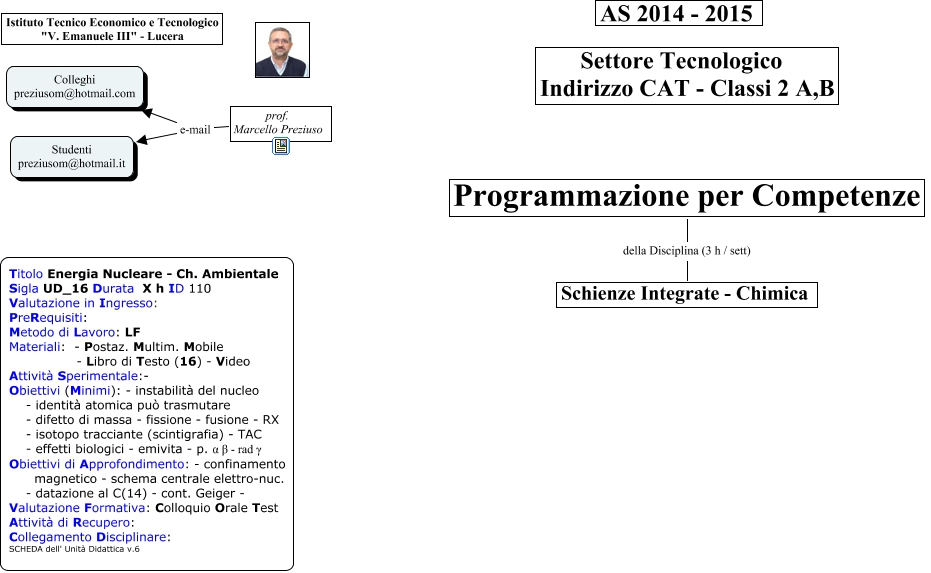 Questa Cmap, creata con IHMC CmapTools, contiene informazioni relative a: UdA_202 - Nucleare - Ambiente, Programmazione per Competenze della Disciplina (3 h / sett) Schienze Integrate - Chimica, prof. Marcello Preziuso e-mail Studenti preziusom@hotmail.it, prof. Marcello Preziuso e-mail Colleghi preziusom@hotmail.com
