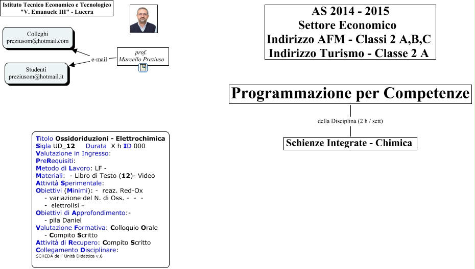 Questa Cmap, creata con IHMC CmapTools, contiene informazioni relative a: UdA_204 - Ossidoriduzioni - Elettrochimica, Programmazione per Competenze della Disciplina (2 h / sett) Schienze Integrate - Chimica, prof. Marcello Preziuso e-mail Colleghi preziusom@hotmail.com, prof. Marcello Preziuso e-mail Studenti preziusom@hotmail.it