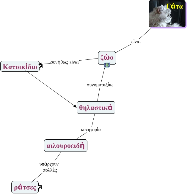 Αυτός ο εννοιολογικός χάρτης, που δημιουργήθηκε με το IHMC Cmap Tools, περιέχει πλήροφορίες που σχετίζονται με: gata, αιλουροειδή υπάρχουν πολλές ράτσες, θηλαστικά κατηγορία αιλουροειδή, ράτσες όπως κοπντότριχη, Γάτα είναι ζώο, ζώο συνήθως είναι κατοικίδιο, ράτσες όπως Αγκύρας, ράτσες όπως Περσίας, ζώο συνομοταξίας θηλαστικά, ράτσες όπως Αιγυπτιακή, σκύλος που και αυτά είναι θηλαστικά, κατοικίδιο όπως σκύλος, κουνελάκι που και αυτά είναι θηλαστικά, κατοικίδιο όπως κουνελάκι, ράτσες όπως Ευρωπαϊκή
