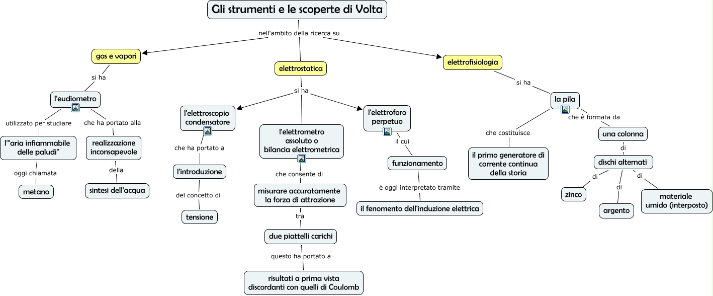 Questa Cmap, creata con IHMC CmapTools, contiene informazioni relative a: Volta, una colonna di dischi alternati, l'elettroscopio condensatore che ha portato a l'introduzione, Gli strumenti e le scoperte di Volta nell'ambito della ricerca su elettrostatica, elettrostatica si ha l'elettrometro assoluto o bilancia elettrometrica, realizzazione inconsapevole della sintesi dell'acqua, l'introduzione del concetto di tensione, elettrostatica si ha l'elettroforo perpetuo, funzionamento è oggi interpretato tramite il fenomento dell'induzione elettrica, l'eudiometro che ha portato alla realizzazione inconsapevole, la pila che è formata da una colonna, l'"aria infiammabile delle paludi" oggi chiamata metano, dischi alternati di zinco, elettrostatica si ha l'elettroscopio condensatore, l'elettrometro assoluto o bilancia elettrometrica che consente di misurare accuratamente la forza di attrazione, elettrofisiologia si ha la pila, due piattelli carichi questo ha portato a risultati a prima vista discordanti con quelli di Coulomb, dischi alternati di argento, Gli strumenti e le scoperte di Volta nell'ambito della ricerca su elettrofisiologia, misurare accuratamente la forza di attrazione tra due piattelli carichi, Gli strumenti e le scoperte di Volta nell'ambito della ricerca su gas e vapori