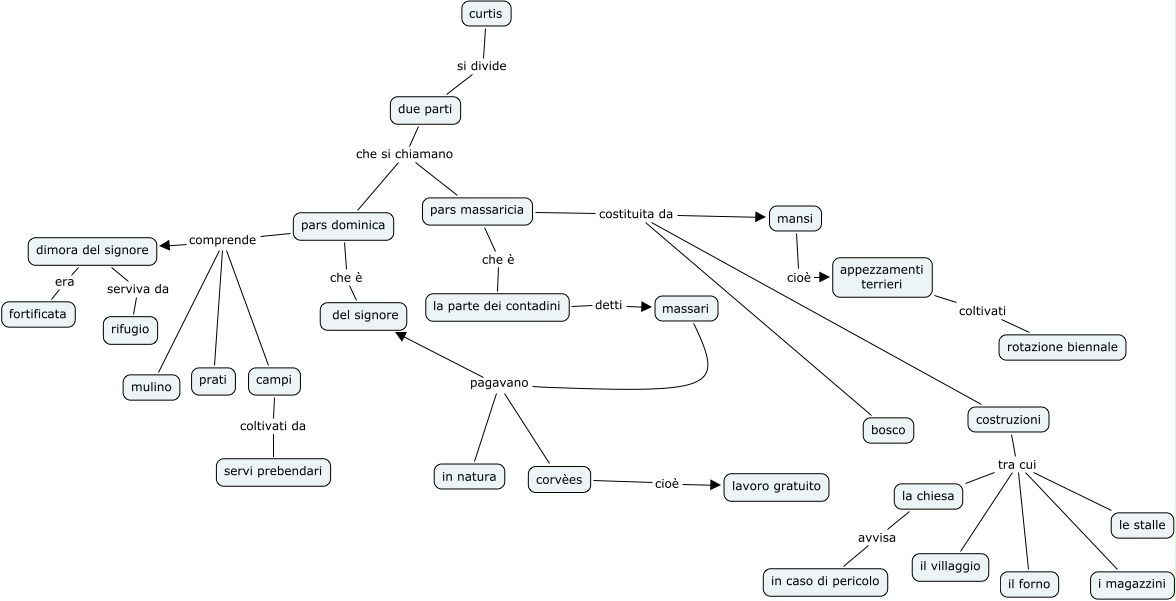 Questa Cmap, creata con IHMC CmapTools, contiene informazioni relative a: curtis_margherita, dimora del signore serviva da rifugio, pars massaricia costituita da mansi, due parti che si chiamano pars dominica, costruzioni tra cui i magazzini, costruzioni tra cui il forno, pars massaricia costituita da costruzioni, massari pagavano del signore, pars massaricia che è la parte dei contadini, due parti che si chiamano pars massaricia, campi coltivati da servi prebendari, costruzioni tra cui le stalle, massari pagavano in natura, dimora del signore era fortificata, costruzioni tra cui il villaggio, pars dominica comprende dimora del signore, mansi cioè appezzamenti terrieri, pars dominica comprende prati, corvèes cioè lavoro gratuito, curtis si divide due parti, massari pagavano corvèes