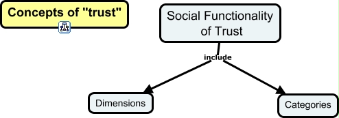 This Concept Map, created with IHMC CmapTools, has information related to: Functionality of Trust-Social, Social Functionality of Trust include Categories, Social Functionality of Trust include Dimensions