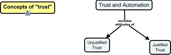 This Concept Map, created with IHMC CmapTools, has information related to: Trust in Automation-Justified and Unjustified Trust, Trust and Automation includes attitudes of Justified Trust, Trust and Automation includes attitudes of Unjustified Trust