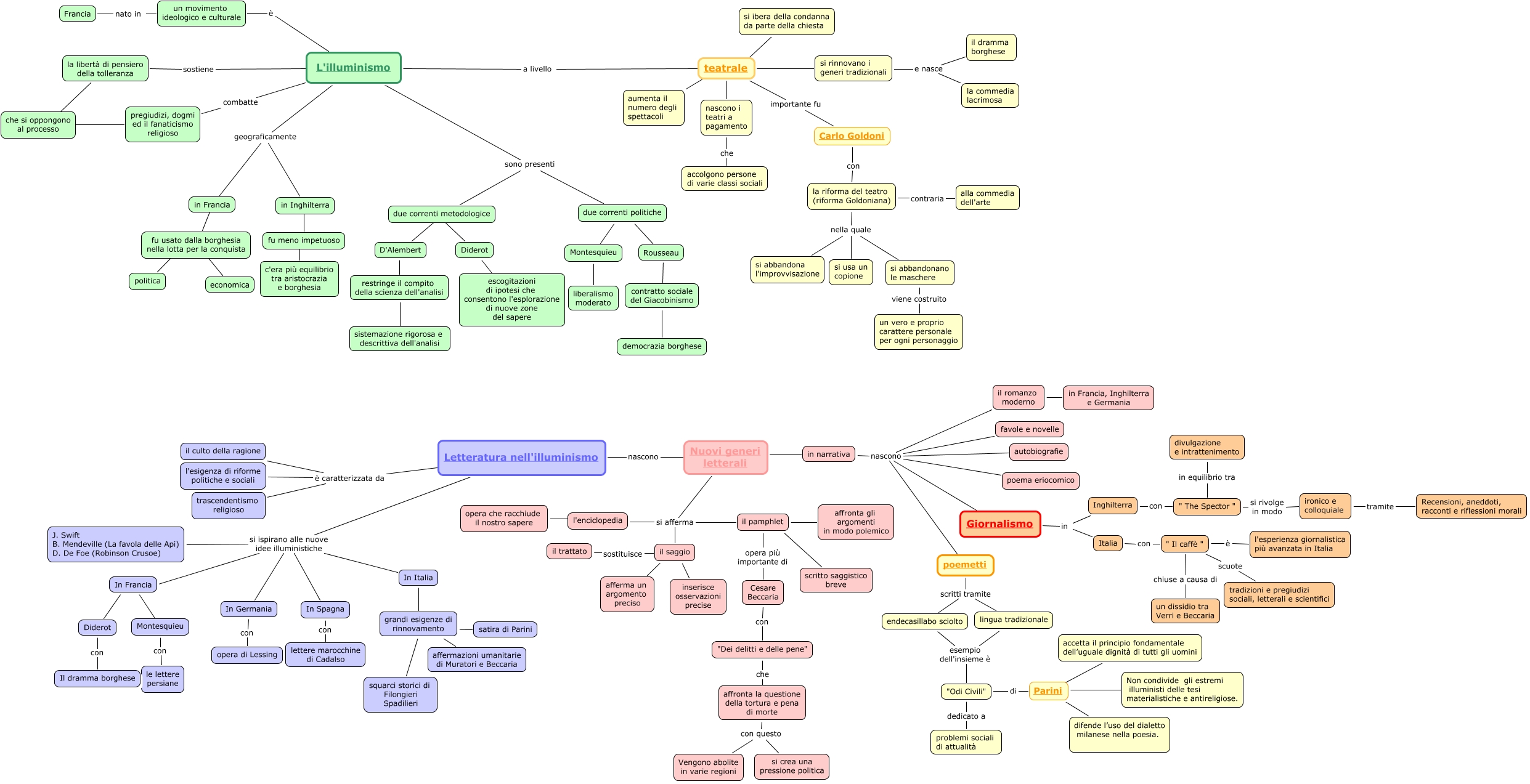 Questa Cmap, creata con IHMC CmapTools, contiene informazioni relative a: L'illuminismo e la letteratura, la riforma del teatro (riforma Goldoniana) nella quale si usa un copione, Rousseau ???? contratto sociale del Giacobinismo, in narrativa nascono Giornalismo, la riforma del teatro (riforma Goldoniana) nella quale si abbandonano le maschere, in narrativa nascono favole e novelle, Letteratura nell'illuminismo si ispirano alle nuove idee illuministiche In Francia, l'enciclopedia ???? opera che racchiude il nostro sapere, grandi esigenze di rinnovamento ???? squarci storici di Filongieri Spadilieri, fu usato dalla borghesia nella lotta per la conquista ???? politica, L'illuminismo sostiene la libertà di pensiero della tolleranza, Cesare Beccaria con "Dei delitti e delle pene", teatrale ???? aumenta il numero degli spettacoli, Inghilterra con " The Spector ", in narrativa nascono poemetti, Parini ???? Non condivide gli estremi illuministi delle tesi materialistiche e antireligiose., in narrativa nascono poema eriocomico, fu usato dalla borghesia nella lotta per la conquista ???? economica, Diderot ???? escogitazioni di ipotesi che consentono l'esplorazione di nuove zone del sapere, teatrale importante fu Carlo Goldoni, Diderot con Il dramma borghese