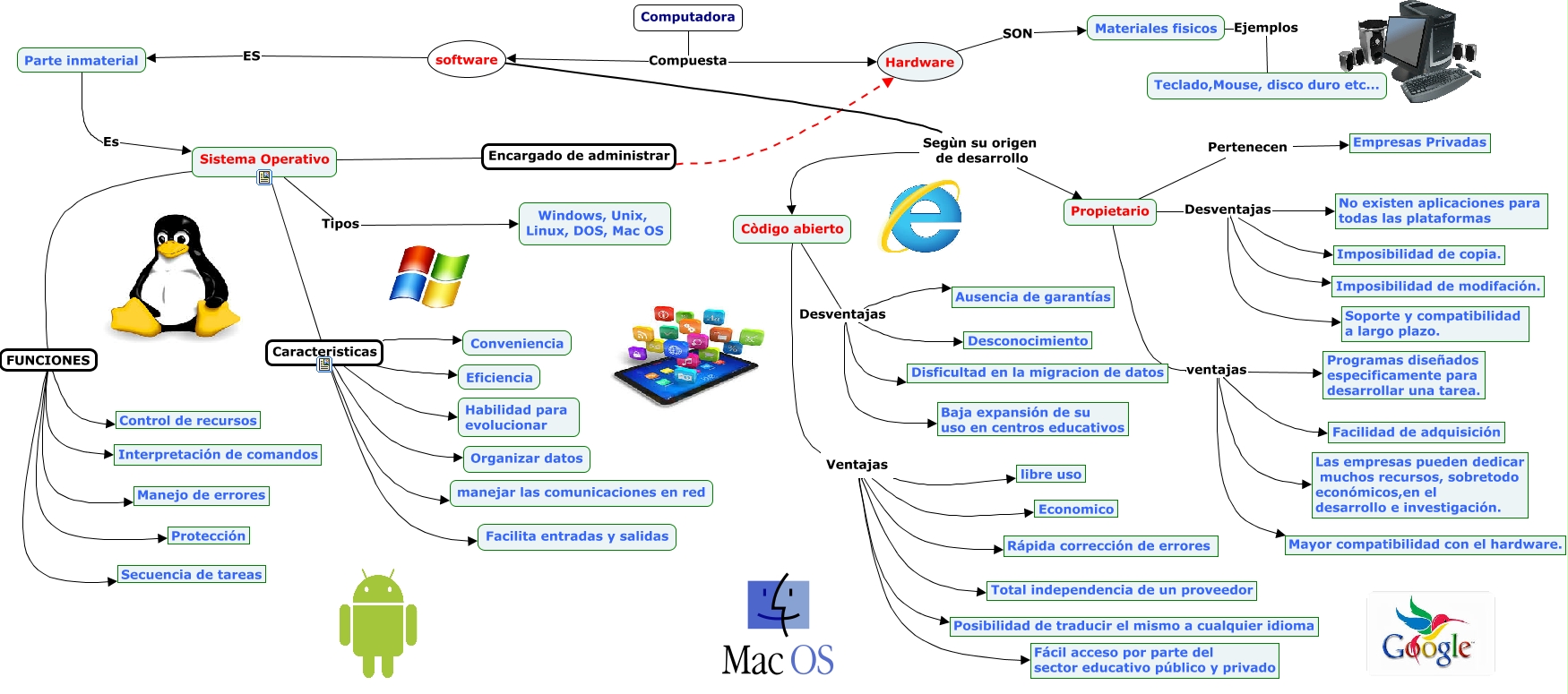 Este Cmap, tiene información relacionada con: Sistema operativo sofware, Sistema Operativo Caracteristicas manejar las comunicaciones en red, Sistema Operativo Caracteristicas Eficiencia, Propietario ventajas Mayor compatibilidad con el hardware., Còdigo abierto Desventajas Ausencia de garantías, Materiales fisicos Ejemplos Teclado,Mouse, disco duro etc..., Propietario Desventajas Imposibilidad de modifación., Sistema Operativo FUNCIONES Protección, Còdigo abierto Desventajas Baja expansión de su uso en centros educativos, Sistema Operativo Caracteristicas Habilidad para evolucionar, Còdigo abierto Ventajas Total independencia de un proveedor, Sistema Operativo Caracteristicas Facilita entradas y salidas, Sistema Operativo Caracteristicas Organizar datos, Hardware SON Materiales fisicos, Propietario Desventajas Imposibilidad de copia., Sistema Operativo FUNCIONES Manejo de errores, Sistema Operativo Tipos Windows, Unix, Linux, DOS, Mac OS, Còdigo abierto Ventajas Posibilidad de traducir el mismo a cualquier idioma, Còdigo abierto Desventajas Desconocimiento, Sistema Operativo Encargado de administrar Hardware, software ES Parte inmaterial