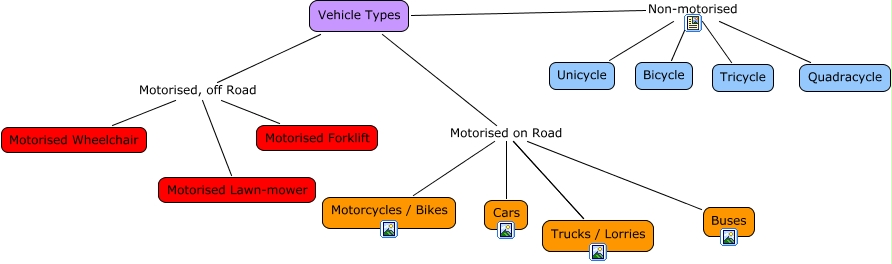 This Concept Map, created with IHMC CmapTools, has information related to: Type of Vehicles, Vehicle Types Motorised on Road Trucks / Lorries, Vehicle Types Motorised, off Road Motorised Lawn-mower, Vehicle Types Non-motorised Bicycle, Vehicle Types Motorised on Road Motorcycles / Bikes, Vehicle Types Non-motorised Tricycle, Vehicle Types Non-motorised Unicycle, Vehicle Types Non-motorised Quadracycle, Vehicle Types Motorised on Road Cars, Vehicle Types Motorised, off Road Motorised Wheelchair, Vehicle Types Motorised on Road Trucks / Lorries, Vehicle Types Motorised on Road Buses, Vehicle Types Motorised, off Road Motorised Forklift