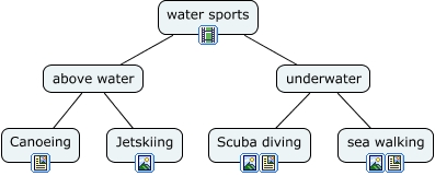 This Concept Map, created with IHMC CmapTools, has information related to: suba diving, above water Canoeing, water sports underwater, above water Jetskiing, water sports above water, underwater sea walking, underwater Scuba diving