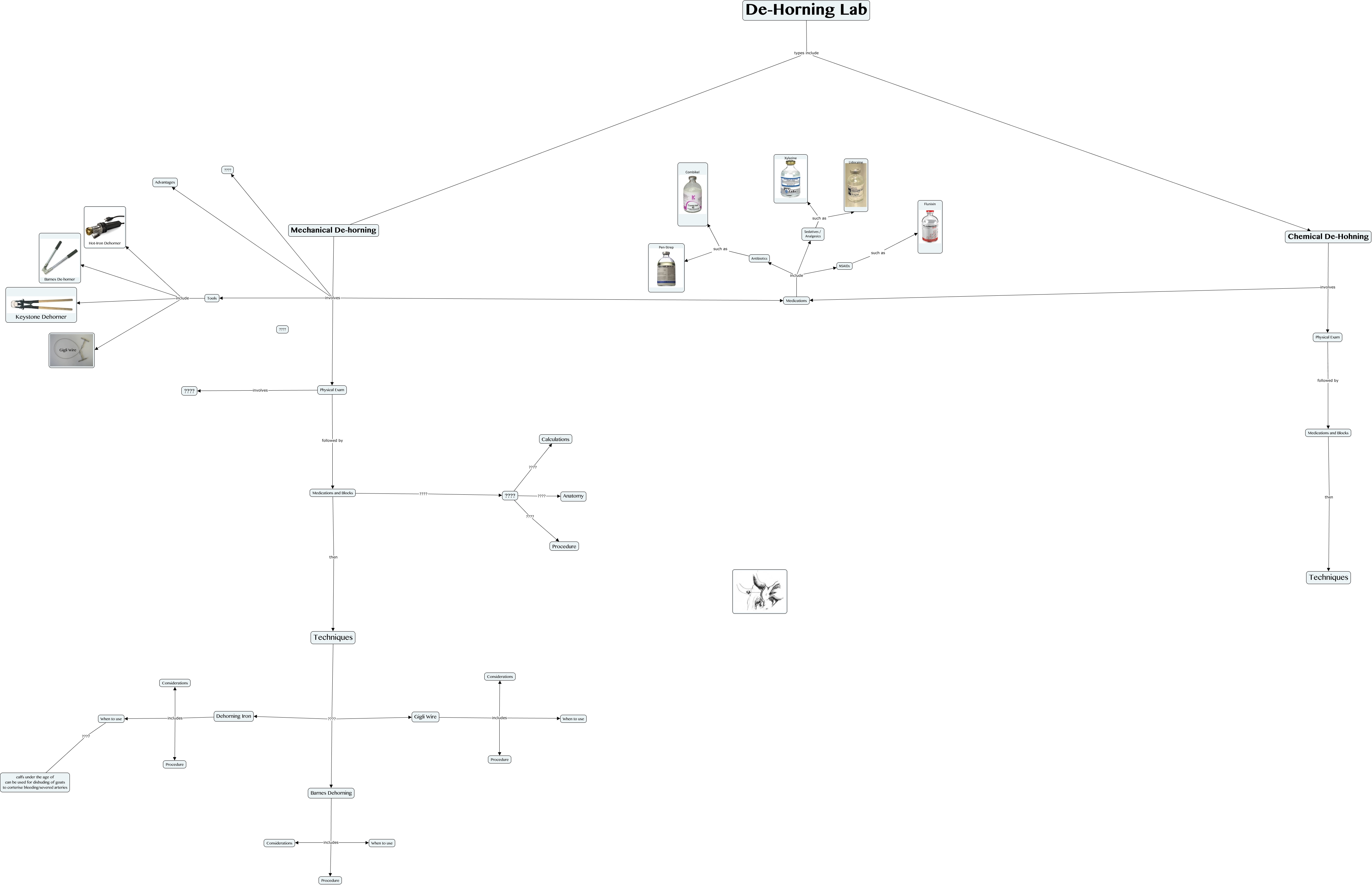 This Concept Map, created with IHMC CmapTools, has information related to: dehorning mnh 9 22 2015, ???? ???? Calculations, Gigli Wire includes Considerations, Mechanical De-horning involves Tools, Techniques ???? Gigli Wire, Dehorning Iron includes Considerations, Dehorning Iron includes When to use, Tools include Barnes De-horner, Gigli Wire includes Procedure, Medications and Blocks then Techniques, Chemical De-Hohning involves Medications, Mechanical De-horning involves Medications, Techniques ???? Barnes Dehorning, Gigli Wire includes When to use, Dehorning Iron includes Procedure, Mechanical De-horning involves Advantages, Mechanical De-horning involves Physical Exam, Medications and Blocks then Techniques, Chemical De-Hohning involves Physical Exam, Sedatives / Analgesics such as Lidocaine, Tools include Gigli Wire