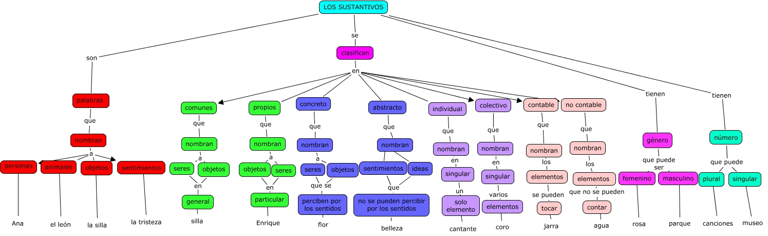 Este Cmap, tiene información relacionada con: sustantivos(Moisés,Carlos Daniel y Sandra), individual que nombran, nombran a objetos, género que puede ser femenino, elementos ???? coro, plural ???? canciones, nombran a objetos, LOS SUSTANTIVOS son palabras, seres en particular, ideas que no se pueden percibir por los sentidos, femenino ???? rosa, colectivo que nombran, particular ???? Enrique, clasifican en abstracto, sentimientos ???? la tristeza, objetos que se perciben por los sentidos, nombran en singular, nombran a animales, género que puede ser masculino, clasifican en no contable, clasifican en contable