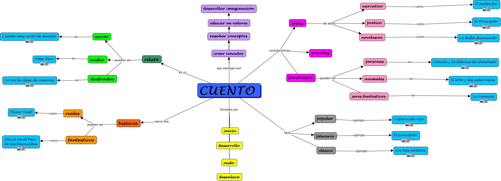 Este Cmap, tiene información relacionada con: mapa conceptual cuento, reales como Oliver Twist, audio en Peter Pan, personas en Charlie y la fábrica de chocolate, novelescos como La Bella durmiento, CUENTO formado por desarrollo, relato pueden ser ilustrados, CUENTO sus ventajas son enseñar conceptos, personajes pueden ser animales, CUENTO tipos popular, CUENTO formado por inicio, escrito en Cuento mas corto de mundo, CUENTO narra una historia, CUENTO tipos clásico, clásico ejemplo Los tres cerditos, CUENTO caracteristicas personajes, breve de estilo poetico, breve de estilo novelescos, CUENTO formado por desenlace, animales en El lobo y las siete ovejas, poetico como El Principito