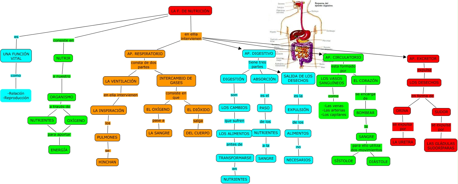 Este Cmap, tiene información relacionada con: LA FUNCIÓN DE NUTRICIÓN-Joaquín, NUTRIENTES para aportar ENERGÍA, EL OXÍGENO pase a LA SANGRE, ABSORCIÓN es el PASO, ORGANISMO a través de OXÍGENO, INTERCAMBIO DE GASES consiste en que EL OXÍGENO, LA INSPIRACIÓN los PULMONES, SANGRE para ello utiliza dos movimientos DIÁSTOLE, EL DIÓXIDO salga DEL CUERPO, LA F. DE NUTRICIÓN en ellla intervienen AP. EXCRETOR, INTERCAMBIO DE GASES consiste en que EL DIÓXIDO, LA F. DE NUTRICIÓN en ellla intervienen AP. DIGESTIVO, UNA FUNCIÓN VITAL como -Relación -Reproducción, LOS DESECHOS en forma de ORINA, AP. CIRCULATORIO esta formado por EL CORAZÓN, LA F. DE NUTRICIÓN en ellla intervienen AP. CIRCULATORIO, DIGESTIÓN son LOS CAMBIOS, AP. DIGESTIVO tiene tres partes ABSORCIÓN, NUTRIR a nuestro ORGANISMO, TRANSFORMARSE en NUTRIENTES, ORGANISMO a través de NUTRIENTES