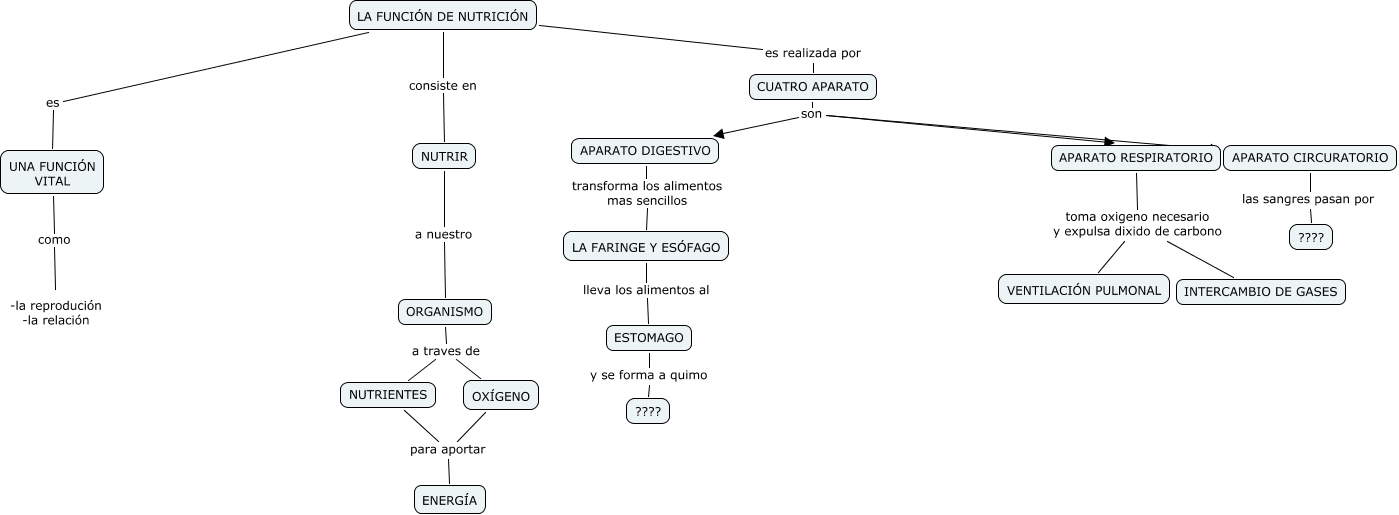 Este Cmap, tiene información relacionada con: LA FUNCIÓN DE NUTRICIÓN-Sofia, APARATO RESPIRATORIO toma oxigeno necesario y expulsa dixido de carbono VENTILACIÓN PULMONAL, ORGANISMO a traves de OXÍGENO, LA FARINGE Y ESÓFAGO lleva los alimentos al ESTOMAGO, OXÍGENO para aportar ENERGÍA, LA FUNCIÓN DE NUTRICIÓN es realizada por CUATRO APARATO, APARATO CIRCURATORIO las sangres pasan por ????, CUATRO APARATO son APARATO CIRCURATORIO, UNA FUNCIÓN VITAL como -la reprodución -la relación, APARATO DIGESTIVO transforma los alimentos mas sencillos LA FARINGE Y ESÓFAGO, LA FUNCIÓN DE NUTRICIÓN es UNA FUNCIÓN VITAL, ORGANISMO a traves de NUTRIENTES, NUTRIR a nuestro ORGANISMO, CUATRO APARATO son APARATO RESPIRATORIO, NUTRIENTES para aportar ENERGÍA, ESTOMAGO y se forma a quimo ????, APARATO RESPIRATORIO toma oxigeno necesario y expulsa dixido de carbono INTERCAMBIO DE GASES, CUATRO APARATO son APARATO DIGESTIVO, LA FUNCIÓN DE NUTRICIÓN consiste en NUTRIR