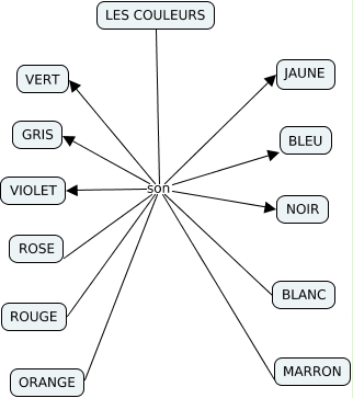 This Concept Map, created with IHMC CmapTools, has information related to: les-coulerus, LES COULEURS son BLEU, LES COULEURS son GRIS, LES COULEURS son ORANGE, LES COULEURS son ROUGE, LES COULEURS son ROSE, LES COULEURS son BLANC, LES COULEURS son VIOLET, LES COULEURS son JAUNE, LES COULEURS son MARRON, LES COULEURS son NOIR, LES COULEURS son VERT