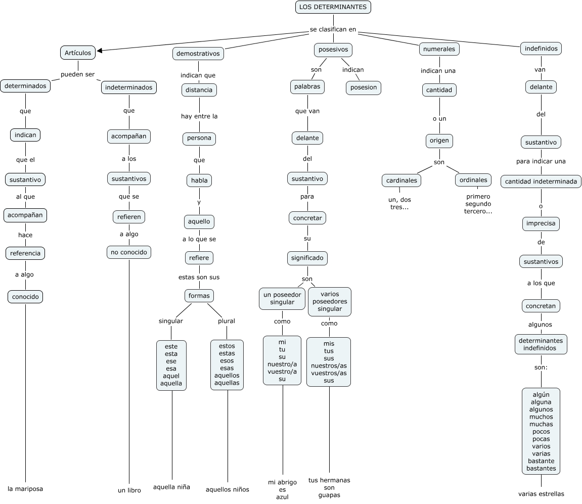 Este Cmap, tiene información relacionada con: LOS DETERMINANTES(Violeta y Nerea), posesivos indican posesion, mi tu su nuestro/a vuestro/a su ???? mi abrigo es azul, no conocido ???? un libro, LOS DETERMINANTES se clasifican en posesivos, imprecisa de sustantivos, cantidad o un origen, demostrativos indican que distancia, indeterminados que acompañan, Artículos pueden ser determinados, formas singular este esta ese esa aquel aquella, mis tus sus nuestros/as vuestros/as sus ???? tus hermanas son guapas, determinados que indican, indican que el sustantivo, indefinidos van delante, significado son varios poseedores singular, acompañan a los sustantivos, referencia a algo conocido, significado son un poseedor singular, LOS DETERMINANTES se clasifican en numerales, sustantivos que se refieren